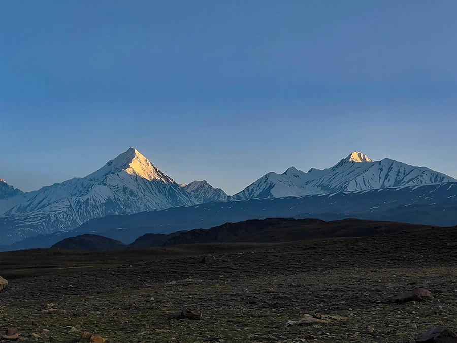 - Camp at Balu Ka Ghera, surrounded by towering mountains